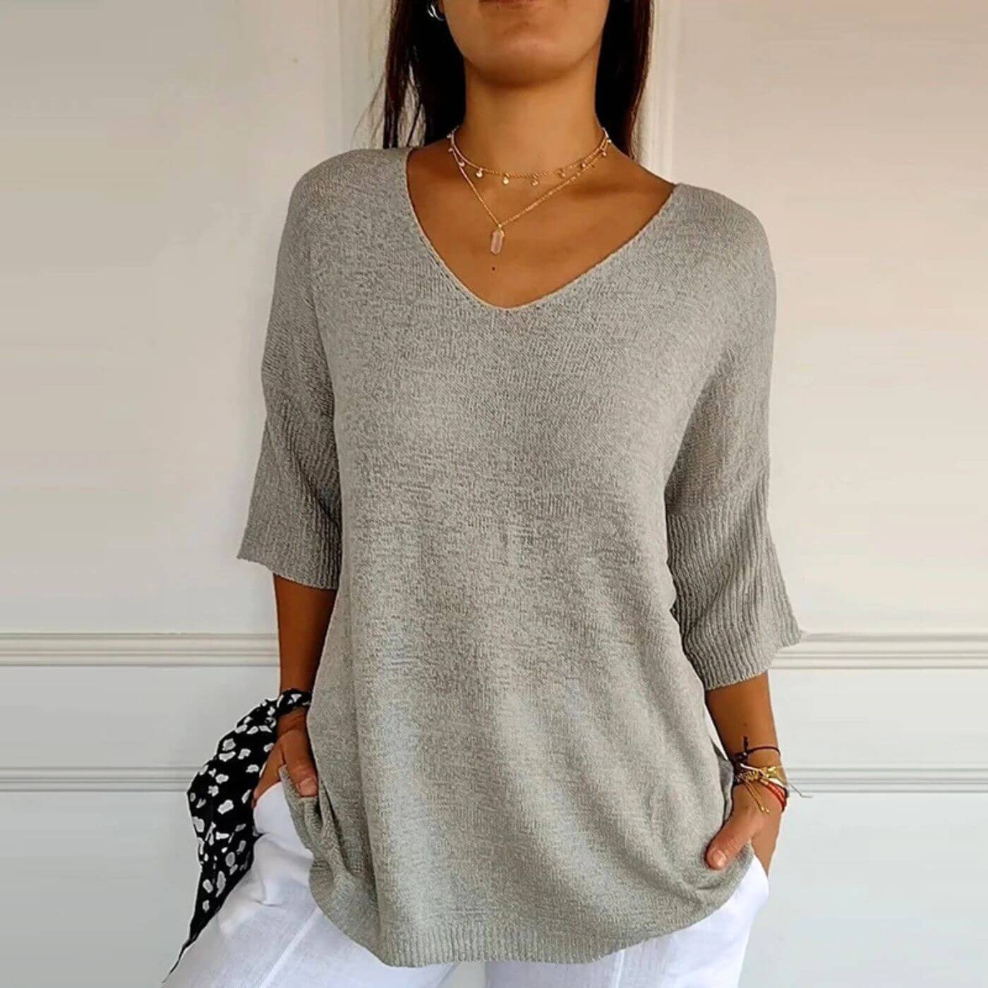 Der Alltag ist schnell also soll das Outfit unkompliziert wirken. Kira zeigt einen klaren V Ausschnitt und einen lockeren Fall der im Handumdrehen ordentlich aussieht. Morgens zu Hosen abends zu Jeans kombinieren ohne den Oberteil zu wechseln. Bequem für lange Tage und doch gepflegt genug für Termine und Treffen.