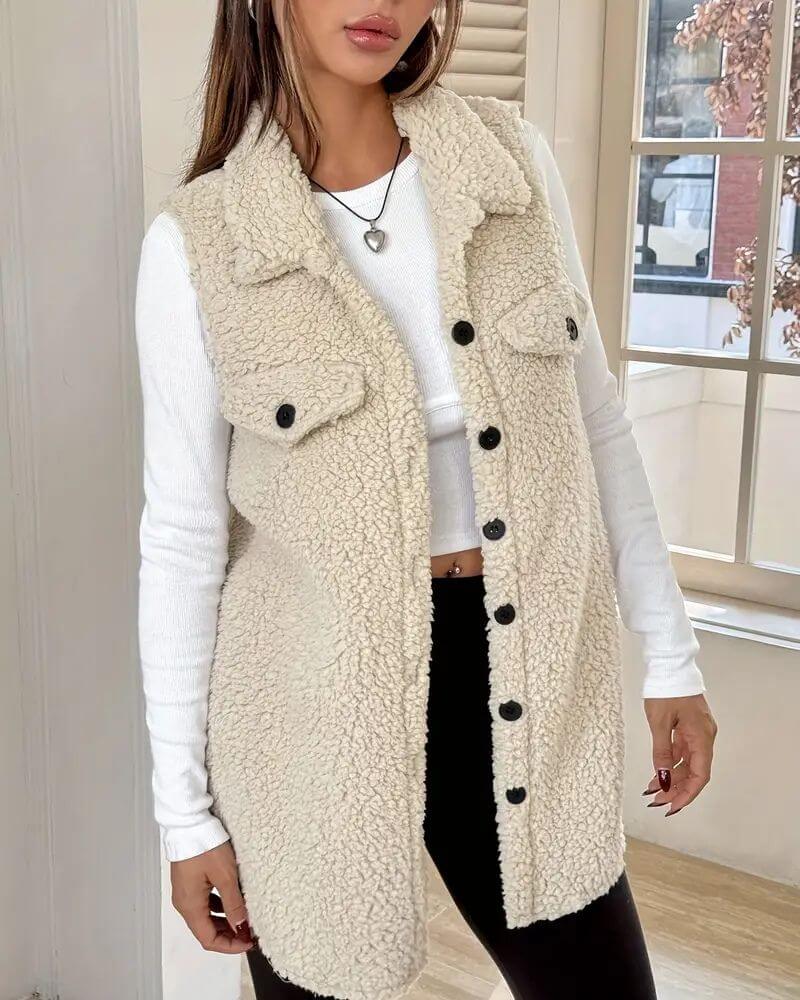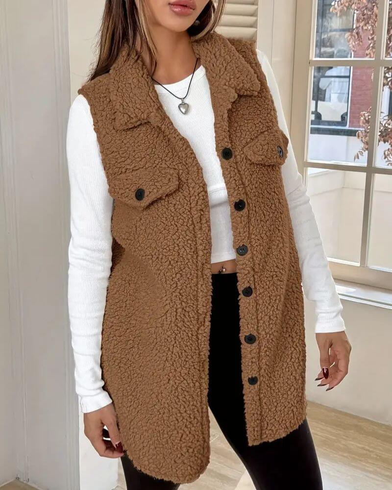 Lina™ - Gemütlicher Ärmelloser Teddy-Langmantel